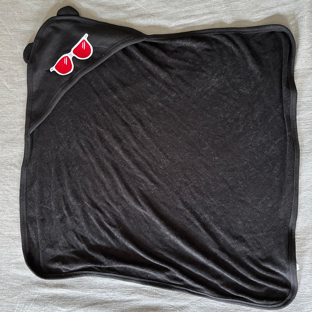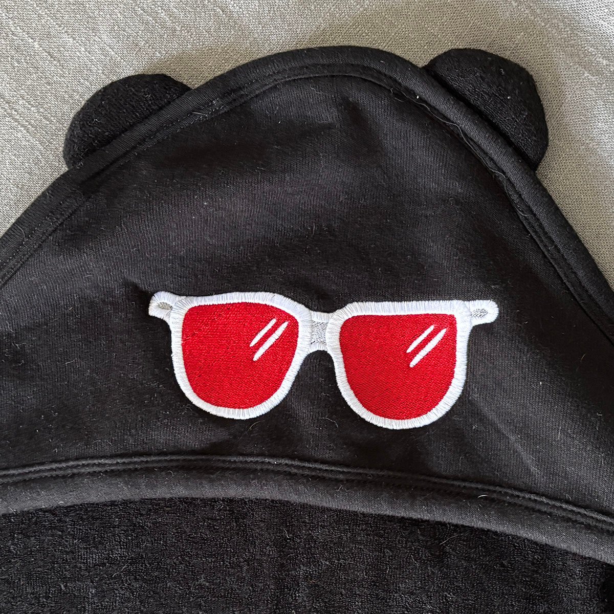 Super soft and light terry cloth kids towel. Illustrated and embroidered eyeballs or sunglasses by our design team.
